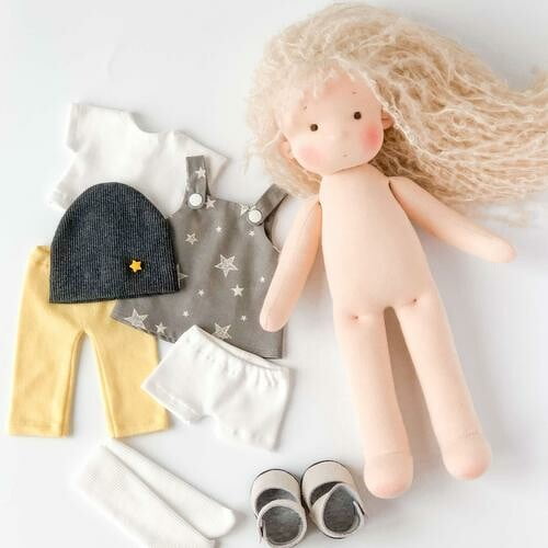 ✔ Prețul include o păpușă și un set de haine de bază (tricou, dres, sarafan, chiloți, șosete și pantofi pentru fete, iar pentru băieți: tricou, salopetă, chiloți, șosete și pantofi).